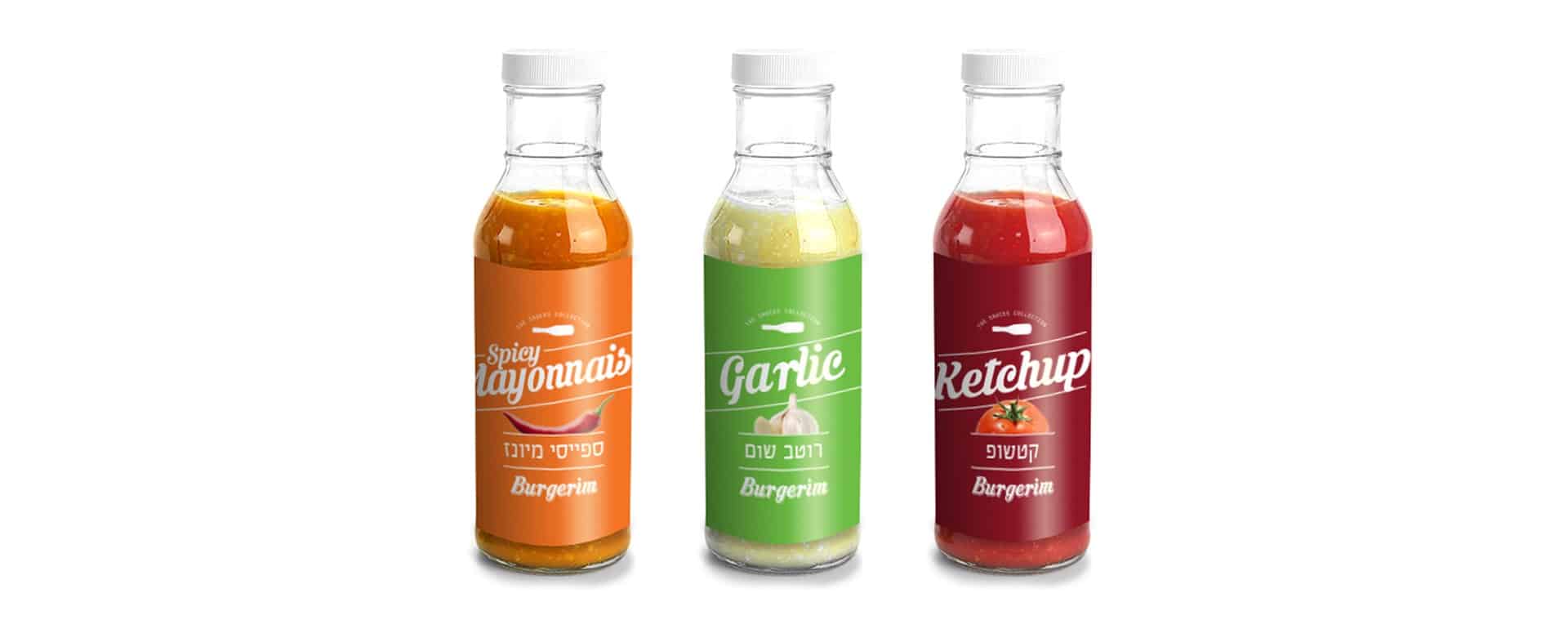 עיצוב ומיתוג של סדרת בקבוקי הרטבים של בורגרים